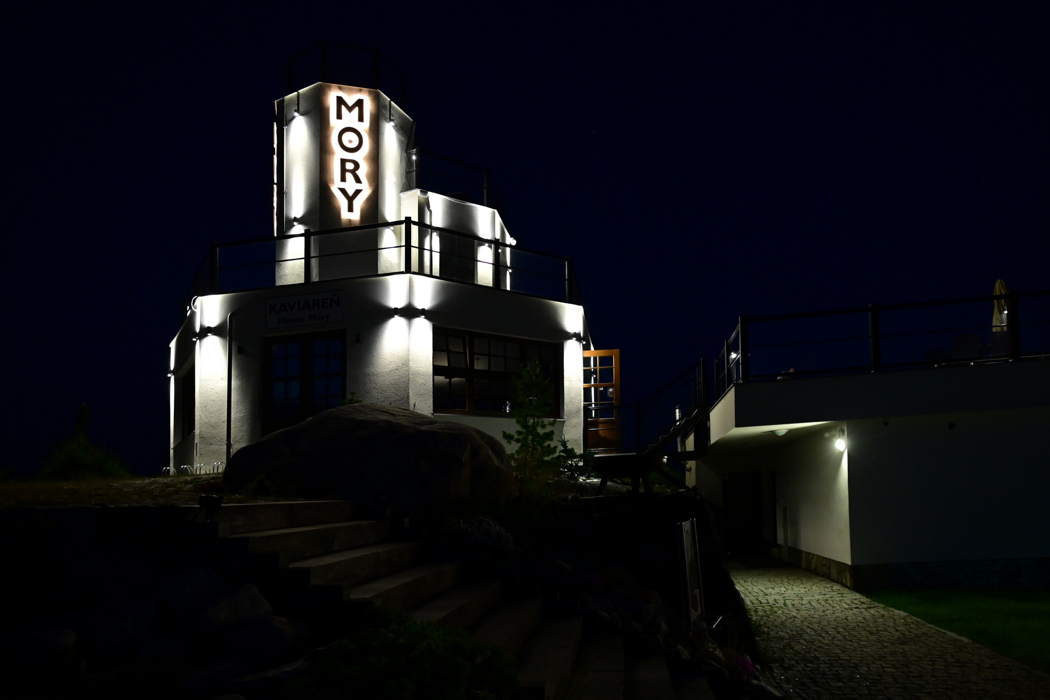 The second task consisted of producing backlit metal signs placed on the facade of the tower and the apartment part, which were conceived as replicas of the original signs painted on the walls of the lookout.